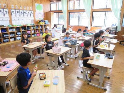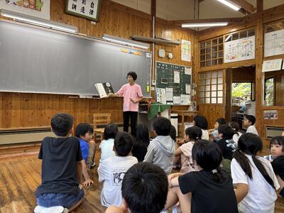 お昼の活動では、全学年で楽しみにしている読み聞かせが行われました。村内外から多くの読み聞かせボランティアの皆様にお越しいただき、物語の世界へと引き込まれる温かい時間を過ごすことができました。地域の方々の深い愛情が、子どもたちの豊かな心を育んでいます。ボランティアの皆様に心より感謝申し上げます。