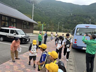 今日の行き先は「多良木警察署」。社会科の授業「安全な暮らしを守る」という単元の学習として、実際に地域の安全を守っている警察署へ見学に行きました。