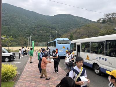 爽やかな秋晴れの下、3年生の子どもたちが元気いっぱいに学校を出発しました。