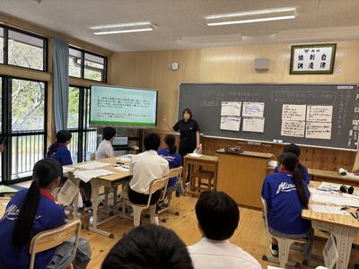 本日12月3日(水)、球磨教育事務所から指導主事をお招きし、水上学園運動場にて第8学年保健体育科の公開授業を実施しました。