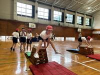 体育館では、3・4年生が元気に跳び箱に取り組んでいました。踏切の音、着地のポーズ。一段ずつ高さを超えていく姿は、まさに成長そのものです。