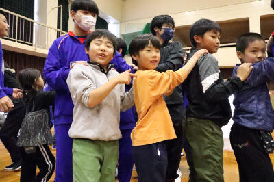 なんといっても本校ならではなのが、前期課程の子どもたち(小学生)と後期課程の子どもたち(中学生)が一緒に遊ぶ姿です。