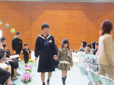 また、7年生は、新しいブレザー型の制服で初めて登校しました。