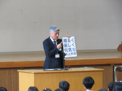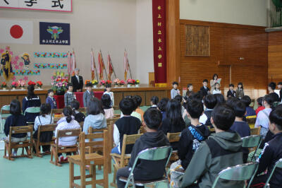 その後、始業式を行い、明るく楽しく元気な水上学園をつくっていきましょうというお話がありました。
