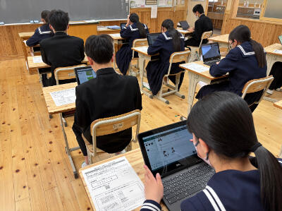 国際的な学力調査においてはCBTが標準になってきています。本校の生徒は日ごろからタブレット端末を使いこなしていますので、スムーズに回答しているようでした。(その他の国語・算数・数学は従来通りの紙のテストです。)