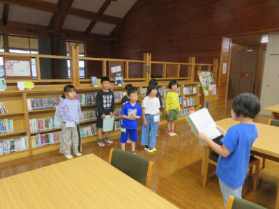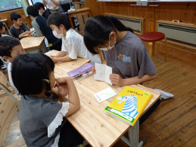 今日は6年生が自分たちで作った絵本を1年生に読み聞かせする時間がありました。