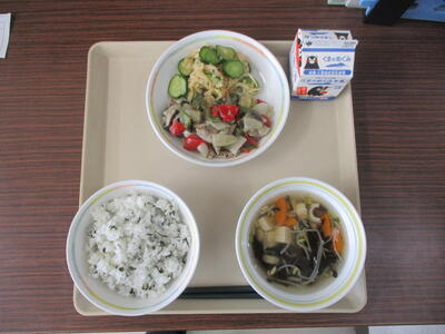 6月21日の献立 投稿日時 : 2024/06/21 学校サイト管理者 麦ごはん 豚肉とナスのみそ炒め ピリ辛きゅうり 豆腐のすまし汁 {{options.likeCount}} {{options.likeCount}}