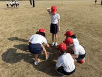 春の陽気の中、運動場で行われる「作戦会議」