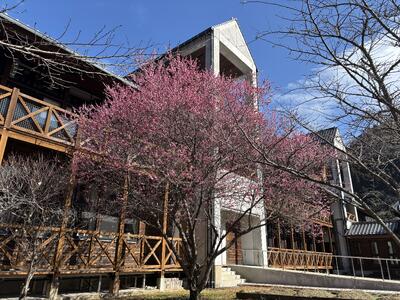 2月も残すところあと1週間となりました。ふと中庭に目を向けると、鮮やかな紅梅が次々に花を咲かせています。青空に映えるそのピンク色は、冬を耐え抜いた力強さと、新しい季節の訪れを感じさせてくれます。