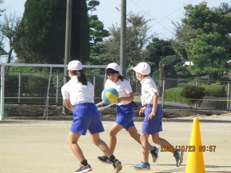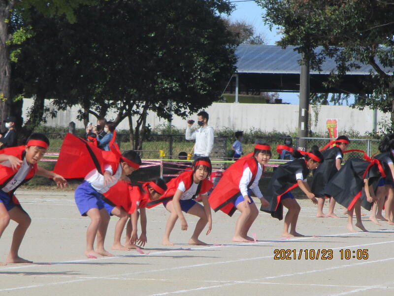 今年度取り入れた競技です。元気者揃いの3,4年生が竹を取り合う場面は圧巻でした。ちなみに、竹は先生方が子どもたちがけがをしないように節を切ったり丁寧にテープを巻いたりして準備をしていました。