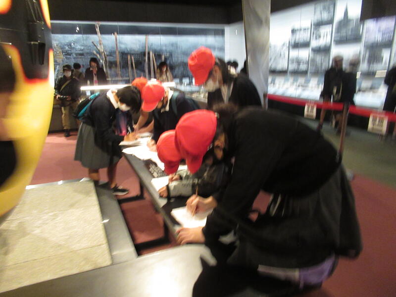 1日目は、被爆体験者の方に話を聞いたり、平和公園周辺をさるくガイドさんとフィールドワークをしたりして「戦争と平和」についてじっくりと考えました。また、1日目の最後には出島の見学もして、長崎の歴史にも触れることができました。