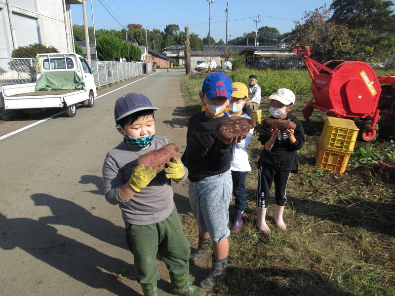 今年は例年以上に大収穫で、2年生の子どもたちも大喜びでした。とても大きくてきれいな色のサツマイモがたくさん収穫できました。芋掘りの後、一部は子どもたちが持ち帰りましたが、後は貯蔵庫に保管していただいています。もっともっと甘くなるのが楽しみです。