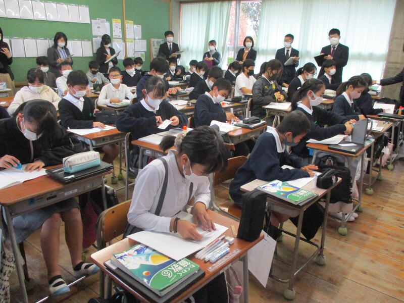 本校の6年生担任奥添先生が町内の若手の先生方に先輩教師として授業を公開されました。大勢の先生方が見ていらっしゃる中、6年生の子どもたちは、自分の考えを友だちと交流させ、堂々と発表していました。とても頼もしい6年生です。また、タブレットも使いこなす姿に参観された先生方も感心されていました。
