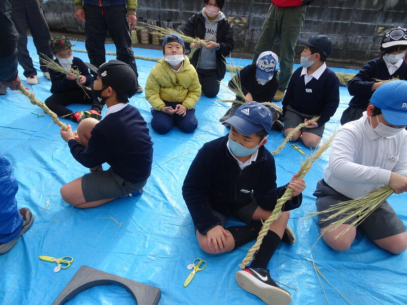 3年生は地域の方の協力を得て、しめ縄作りに挑戦しました。縄をなう経験はなかなかできませんので、とても貴重な経験になりました。お手伝いをしていただいて、最後は全員がしめ縄を完成させていましたので、きっと来年のお正月には各家庭の玄関に飾ってあることでしょう。
