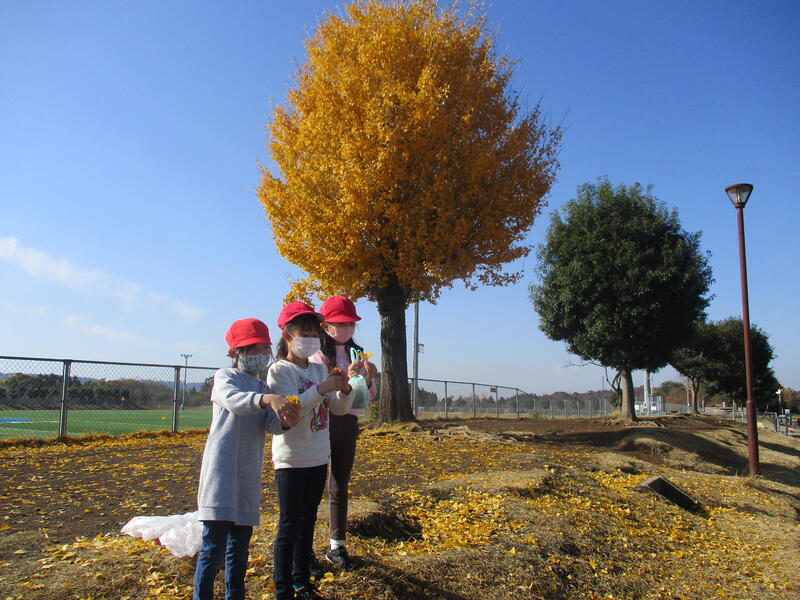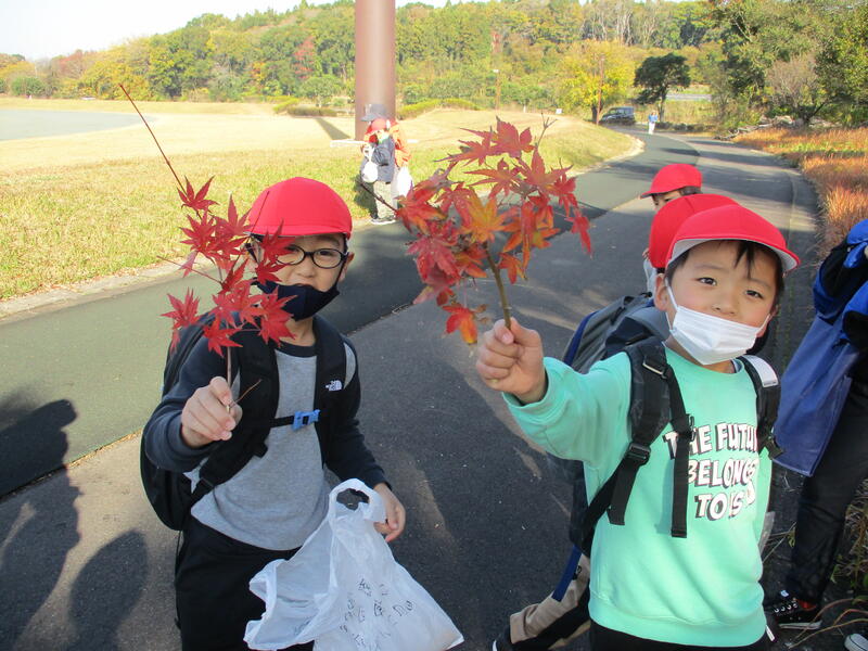 1年生は、秋空の下、スポーツの森で秋探しをしました。落ち葉やドングリを拾ったり、思い切り体を動かしたりして楽しみました。とても広い場所ですので、子どもたちものびのびと過ごすことができていました。