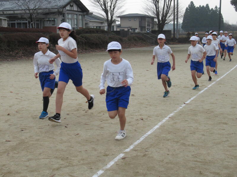 2月10日(月)からスポーツ委員会が中心となって、体力作り等を目的に業間(2時間目と3時間目の間の休み時間)に時間に5分間、全校児童が一斉に運動場を音楽に合わせて走っています。楽しみながら、体力向上が図られることを期待しています。