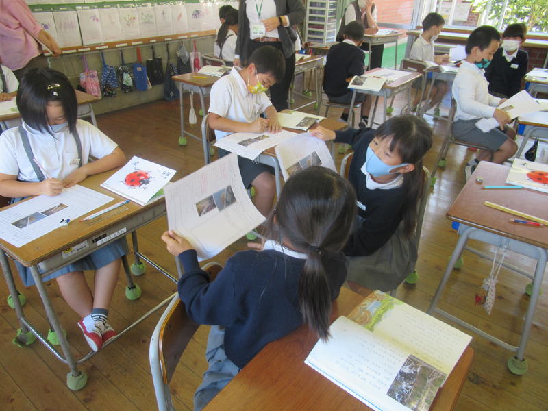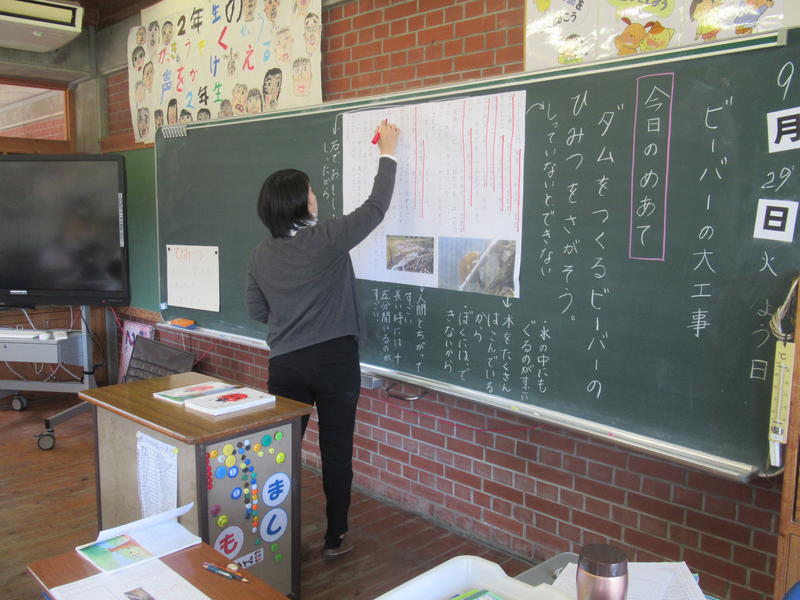 2年生国語「ビーバーの大工事」の授業風景です。2年生もこの時期になると、ずいぶん落ち着きが出てきます。真剣な顔で授業に参加していました。楽しそうに友だちと対話をしたり、みんなで意見交流をしたりする姿が印象的でした。