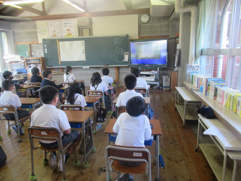 夏休み明け集会は、密を避けるために、事前に録画したビデオによる集会をしました。今年の2月以降、全員集まっての集会はできなくなっていますので、この形に子どもたちは慣れてきたようです。