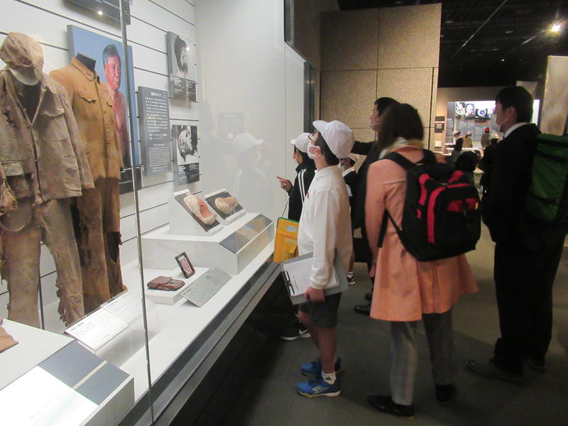 2日目は、最初に原爆資料館の見学をしました。原爆資料館は入場者数に制限がありますので、今年は朝1番の空いている時間に計画をしました。その狙い通り他の団体がいませんでしたので、ゆっくりと見学することができました。一つ一つの展示物を真剣に見る子どもたちの姿が印象的でした。最後の目的地は子どもたちが楽しみにしていたハウステンボスです。学校で計画したとおりには回れなかったようですが、班ごとに思い思いの場所で楽しむことができたようです。今回は、地域クーポン券やミールクーポンなど普段、子どもたちが手にすることがないお金代わりのクーポン券を手にして、その使い方もしっかり考えていました。たくさんの学びがあった修学旅行でした。