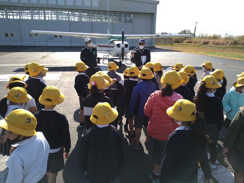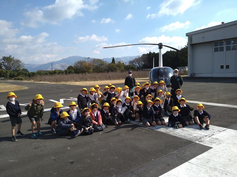 1年生は、空港とJRの駅に出かけました。空港では、外部の方との接触をできるだけ避けるために、本来の空港ではなく、飛行機の駐機場の見学をしました。間近で飛行機やヘリコプターを見るというのはなかなかできない経験ですので、子どもたちもわくわくしながら話を聞いていたようです。ヘリコプターの座席に乗せていただくという貴重な経験もさせていただきました。また、JR体験では、大津駅から光の森駅まで実際にJRに乗車しました。切符もそれぞれ自分で買って、電車に乗り込みました。車内では、写真の通り、きちんと座って、とても立派な1年生でした。最後に杉水公園でお弁当を食べ、そこから歩いて学校に戻りました。たくさんのことを学んだ1年生でした。