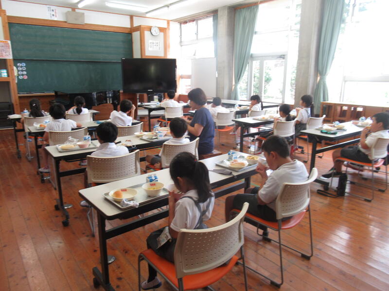 給食や掃除などいつもの学校生活が戻ってきました。猛暑が続いていますので、給食当番や掃除など大変ですが、協力して頑張っています。膝をついて床を拭いている子どもたちの姿も見られました。子どもたちの頑張っている姿を見るのは、とても嬉しいです。