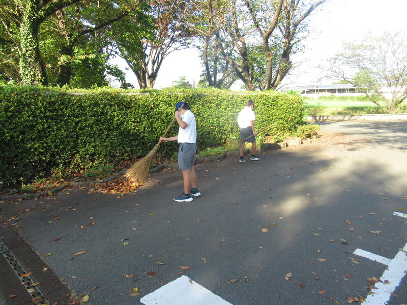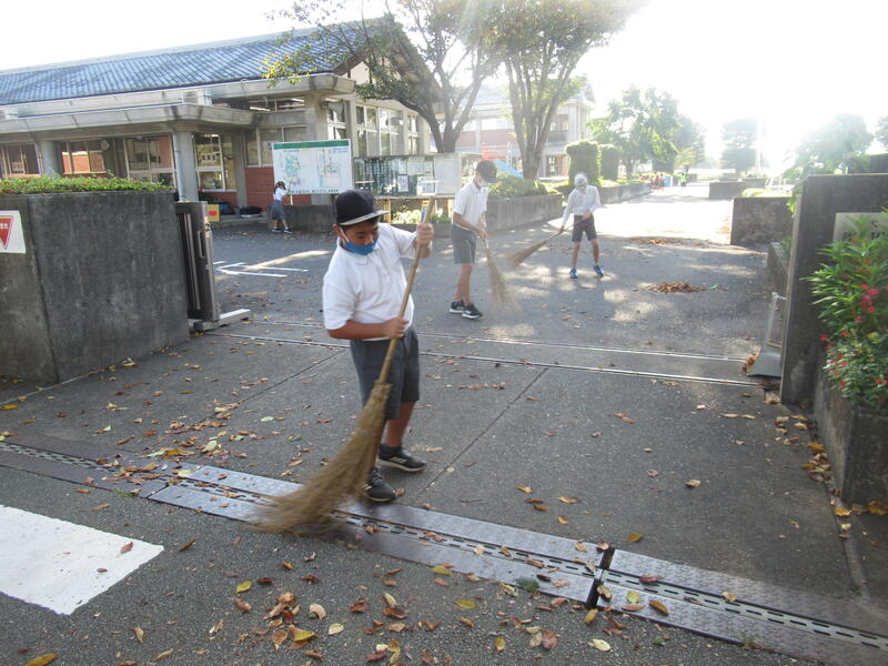 朝から、6年生の子どもたちと環境委員会の子どもたちが落ち葉掃きと花の水やりを頑張ってくれています。学校のために自分ができることを頑張ろうとする気持ちが嬉しいです。