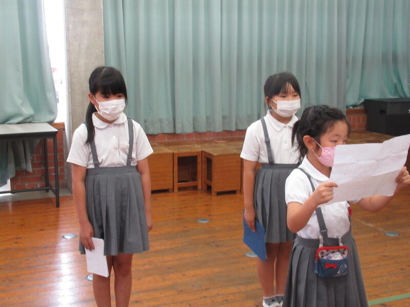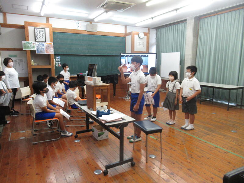 9月の全校集会をZOOMで行いました。連絡のある委員会からのお知らせでは、伝えたいこと、みんなに知ってほしいことを工夫して伝えることができました。さすが、上級生の子どもたちです。