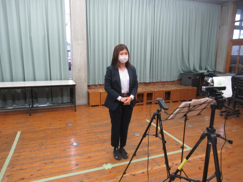 事務職員の堀田先生が産前休暇に入られましたので、牧先生に替わりに来ていただきました。ZOOMで牧先生のご挨拶を各教室に配信をしました。これから、お世話になります。