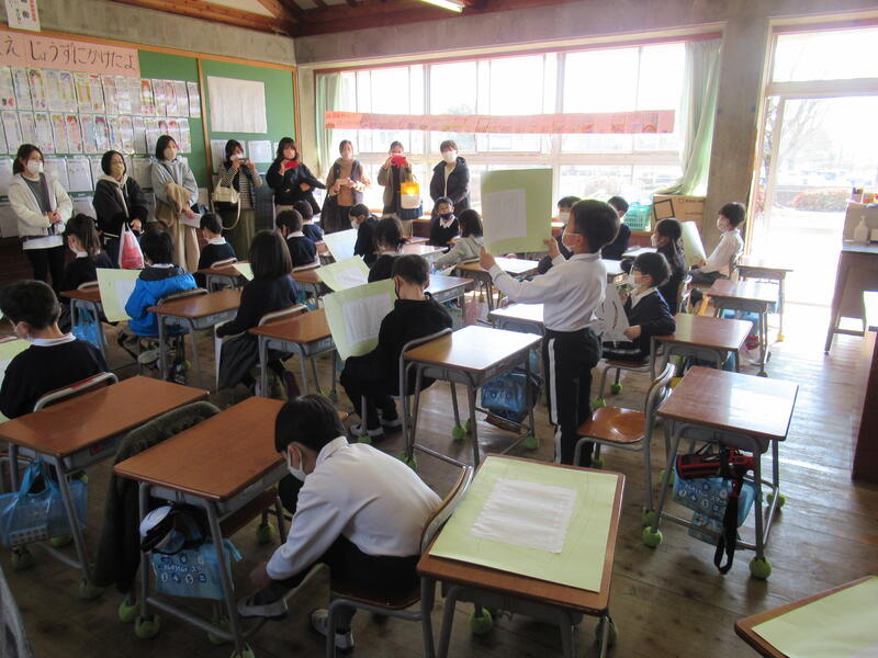 本校の6年生担任奥添先生が町内の若手の先生方に先輩教師として授業を公開されました。大勢の先生方が見ていらっしゃる中、6年生の子どもたちは、自分の考えを友だちと交流させ、堂々と発表していました。とても頼もしい6年生です。また、タブレットも使いこなす姿に参観された先生方も感心されていました。