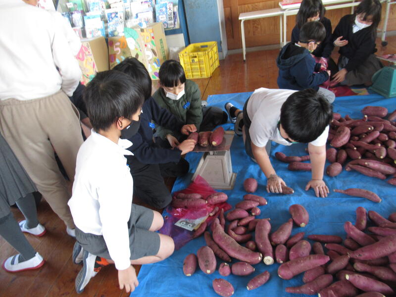 2年生が育てた芋を貯蔵してもらっていましたので、授業参観の折に販売をしました。芋を計量して袋に詰める作業から看板作り、当日の販売と2年生の子どもたちが張り切って取り組んでいる姿はなかなか頼もしかったです。あっという間に売り切れてしましました。
