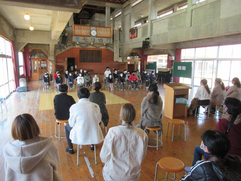 1年生担任の荒木実那子先生が1月5日より産前休暇に入られますので、そのためのお別れの式(正式なお別れではありません。一旦、お休みに入られるという意味です)がありました。1年生の子どもたちと一旦、ここでお別れになりますので、先生自身も感極まった様子でした。これまで担任された1年生、3年生、6年生の子どもたちからメッセージを渡しました。
