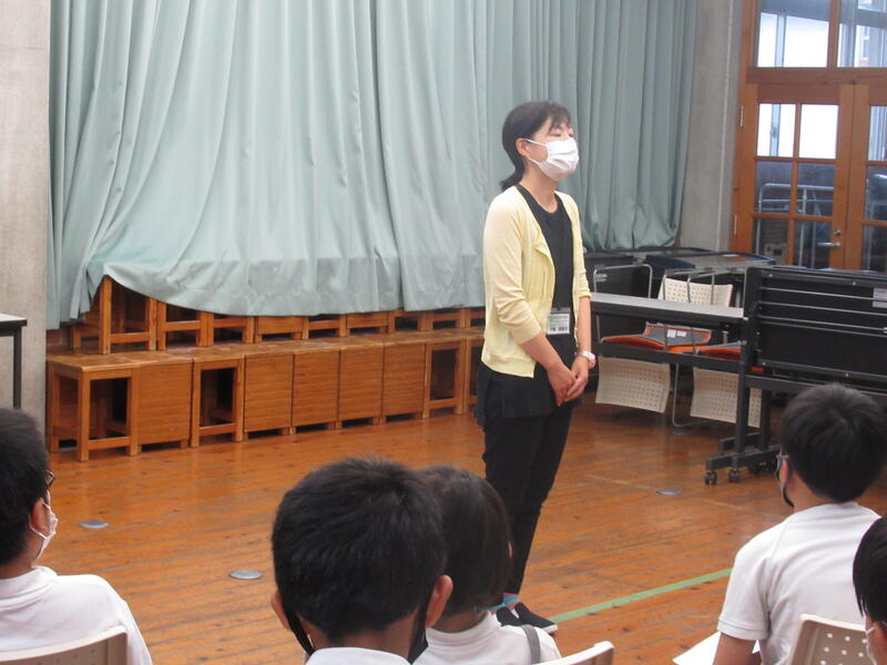 また、夏休み明け集会の後には、「いのちの日」のお話で、猿渡先生が自分の体験談を話されました。