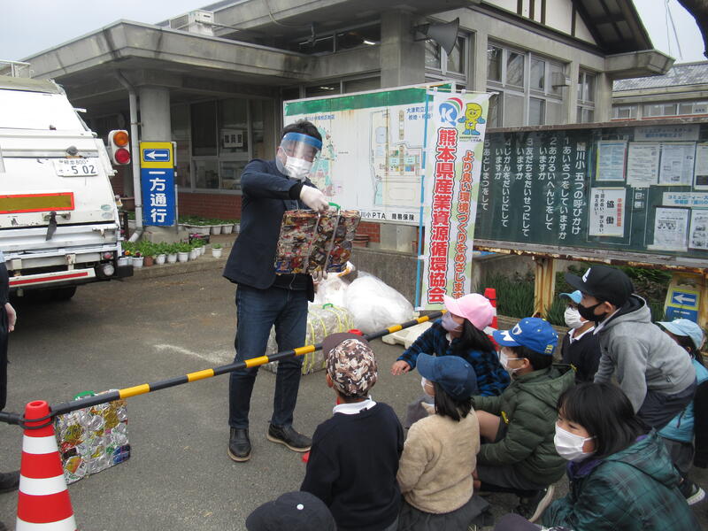 4年生は、環境学習として、グリーンロジスティクスの方に話を聞きました。ゴミの収集についてオンラインで話を聞いた後には、実際にゴミパッカー車の前で実演していただきました。ゴミが実際に車の中に入っていく様子に、子どもたちは興味津々でした。グリーンロジスティクスの皆様、ありがとうございました。