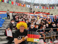 12月13日(金)4・5・6年生は、パークドーム熊本にて行われた7位8位決定戦となる「ドイツ対スウェーデン」の試合を観戦しました。本校は、ドイツを応援することになっており、国旗を用意したり、ドイツ語で応援したりと国際理解のいい機会となりました。外国の方と一緒に応援する姿は、国境を越えた交流となりました。(写真左上)ハンドボールという競技は、子ども達にとっては、あまり馴染みのないスポーツですが、世界最高レベルの試合を間近に観戦でき「すごい。」「かっこいい。」などの声が聞かれ、貴重な経験となりました。