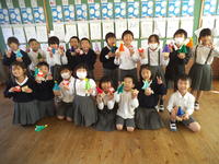 10月2日(水)1年生が地域探検として杉下地区に出かけました。杉下公民館では、竹細工の制作を行いました。地域の方が竹を切ってパーツをはめる状態まで作って下さっていてスムーズに作ることができました。また、地域の方が作られた竹細工を見せてもらいました。子ども達は、本物そっくりの作品を見て驚きを隠せませんでした。そのほかにもいろいろとおもてなしいただき感謝申し上げます。ありがとうございました。