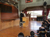 4日(木)に校内童話発表会を行いました。各学年の代表一名が練習の成果を発表しました。6名の児童達は緊張した表情で出番を待っていましたが、マイクを前に立ったとたん、息を大きく吸って覚えた文章がすらすらと出てきました。また、聞いている児童達の様子を見ていると、次の展開がどうなるのか目を輝かせて聞いていました。各学年では、すべての児童が取り組んでおり、各学級でも一生懸命取り組む姿が見られました。これを機会に、今後も本を読むことを好きになってほしいと思います。当日の結果は、3年生の飛石七香さんと6年生の志賀花凜さんの二名が学校代表として大津町の大会に出場します。護川小学校みんなで応援したいと思います。
