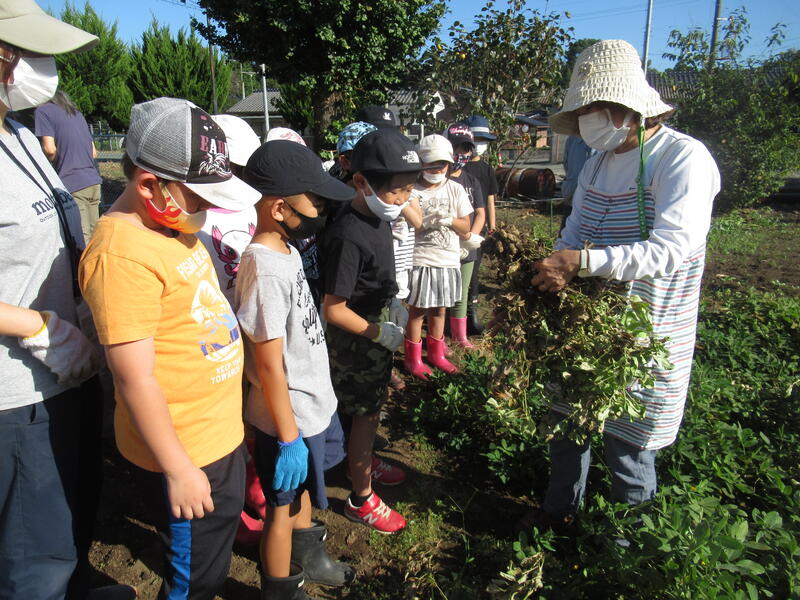 5年生が枝豆の収穫をしました。1本にたくさんの枝豆がついていましたので、子どもたちは大喜びでした。例年以上に、今年のできは上々だったようです。家に持ち帰りましたが、味はいかがだったでしょうか?