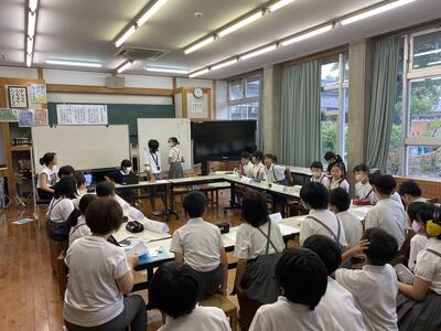 5月30日に代表委員会が行われました。代表委員会とは、各学級の代表、各委員会の委員長が参加し、児童が主体となって話し合いをする場のことです。今回は「第1回もりかわ集会」について提案がありました。人権委員会から、もりかわ集会の目的として「いじめや差別に気づき、みんなで話し合いながら友達の気持ちに寄り添い合い、学校全体がいじめや差別をなくしていこうとする温かい仲間としてつながる」と説明がありました。各学級から実態を出し合いました。