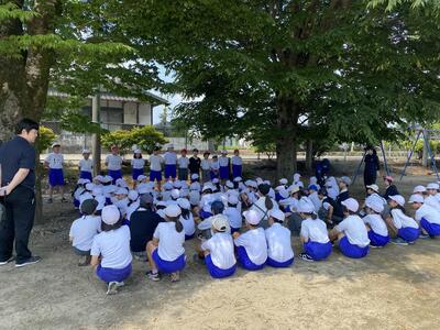 5月15日は運動会に向けての結団式が行われました。結団式では、応援団員の自己紹介や意気込み、応援歌の練習が行われ、元気いっぱいの声が校庭に響いていました。運動会まで残り2週間を切りました。各学年、本番に向けて練習に励んでいるところです。子どもたちにとっても、保護者や地域の人たちにとっても思い出に残る運動会を目指してがんばります。
