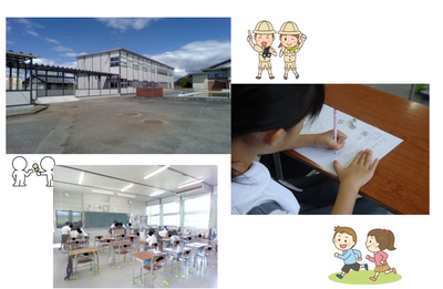 夏休み明け。何やら大きな建物ができたようです。これはプレハブです。学校の瓦を変えるため、教室で授業ができなくなりました。そこで教室が プレハブに移動しました。