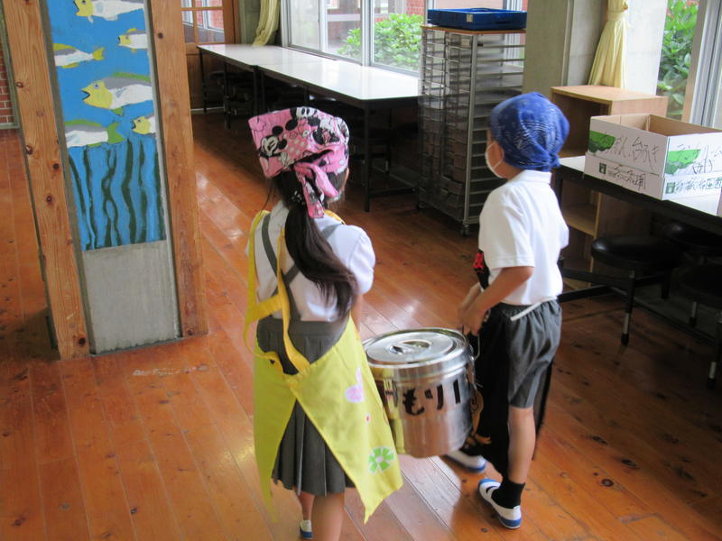 6月1日から給食が始まりました。新型コロナウィルス感染防止のためにマイエプロンを使ったり、入念に手洗い、消毒をしたりと今まで以上に衛生面に気をつけて準備をしています。久しぶりの給食でしたので、みんなおいしく食べることができました。