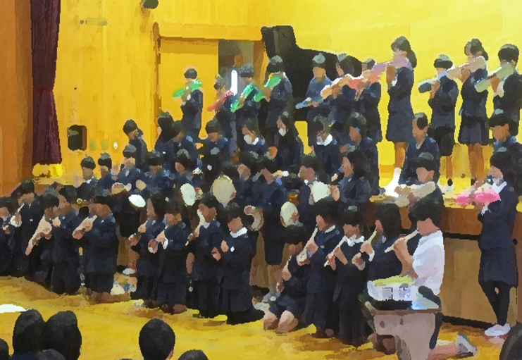 4年生は、「ごんぎつね」と「鉄腕アトム」の合唱と合奏を披露しました。迫力のある歌声と、リコーダーと鍵盤ハーモニカの息の合った演奏に観客も感動していました。