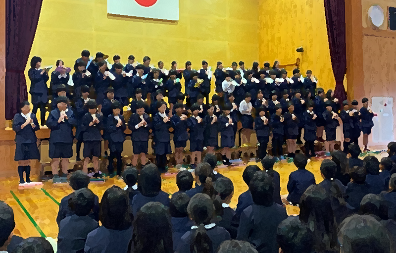 3月11日(火)に6年生とのお別れ集会が行われました。各学年から6年生に向けた発表がありました。歌や合奏を披露したり、プレゼントを渡したりして感謝の気持ちを伝えていました。6年生はとてもうれしそうな表情で発表を聞いていました。