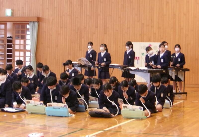 3年生は、社会科見学で学んだことの発表と合奏がありました。八代青果市場や八代消防署、熊本ドックを見学して学んだことをクイズにして発表しました。また、合奏では、「ミッキーマウスマーチ」の演奏をしました。リコーダーや鍵盤ハーモニカ、木琴やタンバリンなどの打楽器を使ってリズムに合わせて楽しく演奏していました。観客も手拍子で盛り上がっていました。
