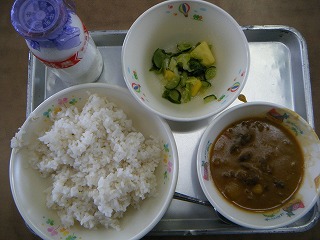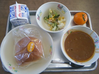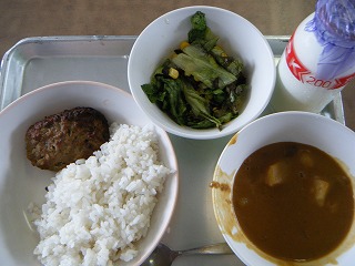 今日は、ふるさと元気っこメニューです。地元の食材をたくさん使ってあります。カレー味が食欲をそそります。