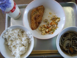 ジャポネソースかけが和風で今日のメニューにぴったりです。寒い一日に吉野汁がうれしいです。