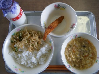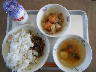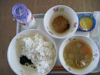 盛りだくさんのめにゅーで、食品のバランスもOKの給食。ありがとうございます。