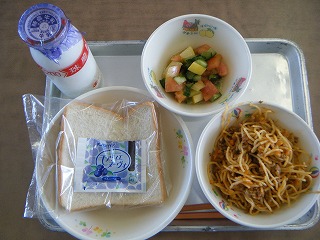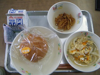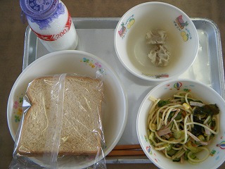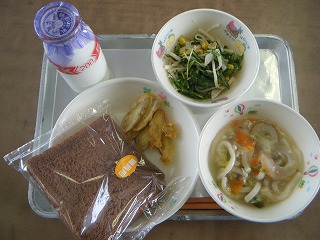 パン 大豆チョコ 親子うどん 野菜チップス 牛乳