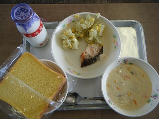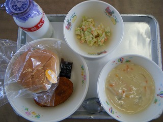 ココアパン ベーコンサラダ さつまいものシチュー 牛乳