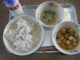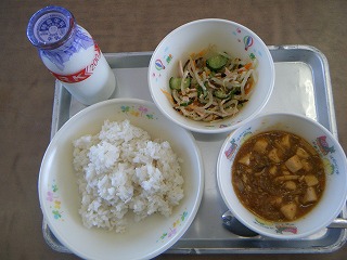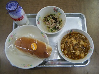 ミルクパン リンゴジャム マーボー豆腐 中華サラダ ミルメーク 牛乳